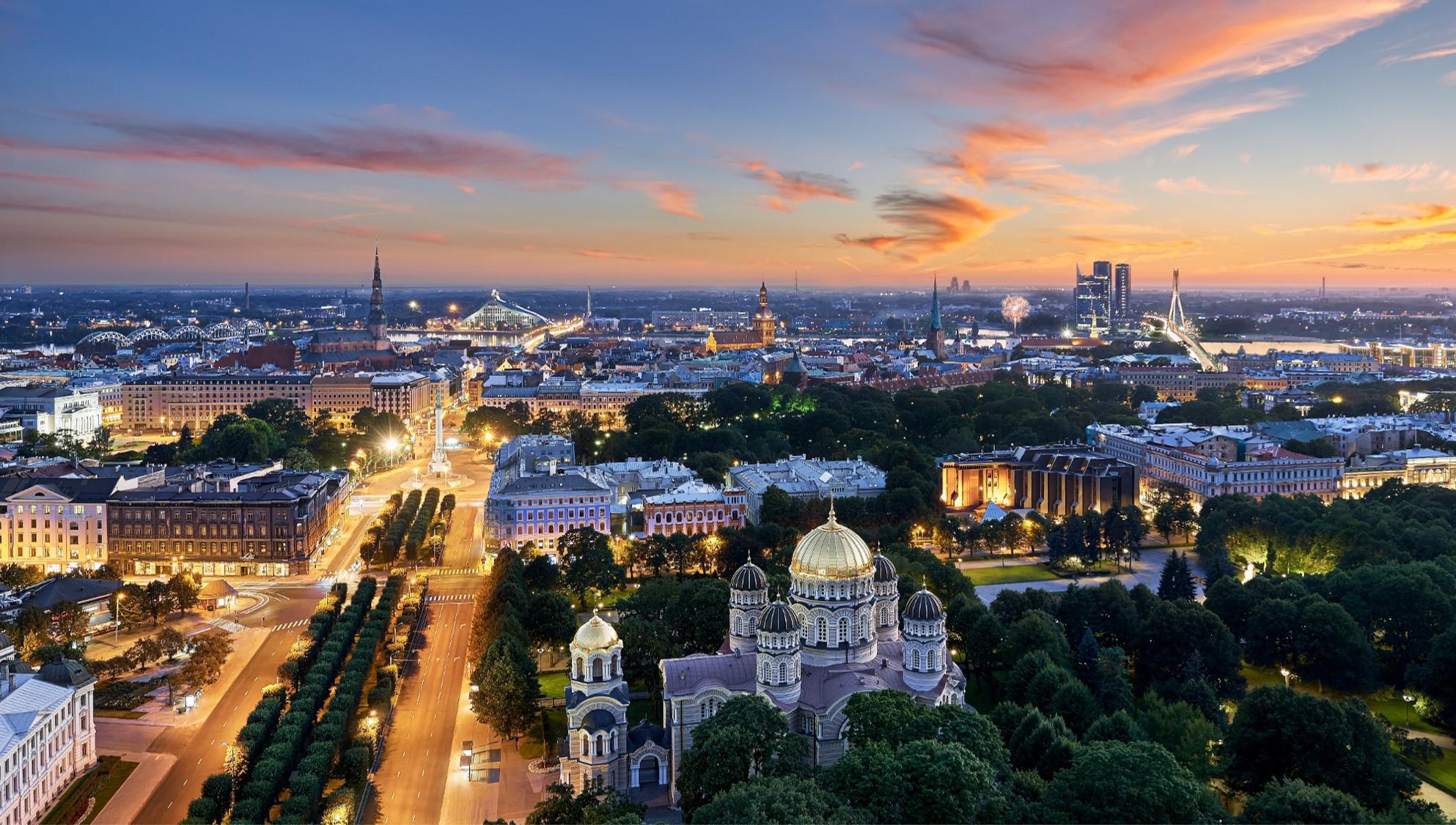 After dinner, we go to the Skyline Bar, where you will have a magnificent view over the city of Riga, sipping on a nice cocktail