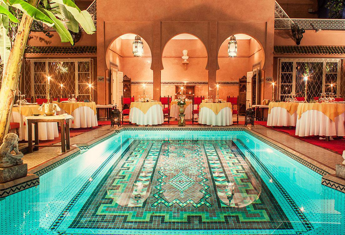 This beautiful Riad (palatial house built around a courtyard) dating back to the 19th century is the former residence of the French Designer Pierre Balmain.